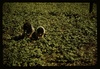 Two people kneeling, working in a field, possibly in Puerto Rico
