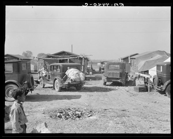 Housing for migratory workers in cotton, five miles north of Corcoran, California. The famous strikers' concentration camp in 1933 was at Corcoran camp