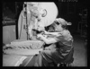 In North American's plastic department, a woman employee drills a part while it is held firmly on a jig