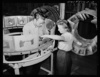 Men and women working together on the production front. Two North American employees assemble the engine cowling for a B-25 bomber