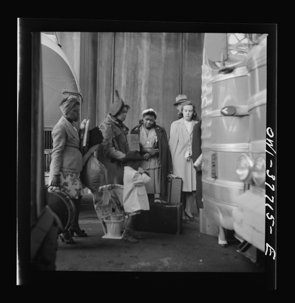 Indianapolis, Indiana. Bus passengers in the Greyhound terminal