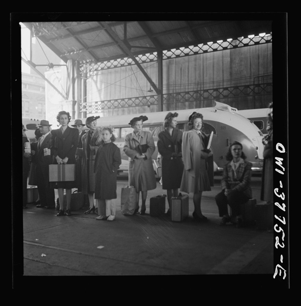 Indianapolis, Indiana. Passengers waiting for a bus at the Greyhound bus station