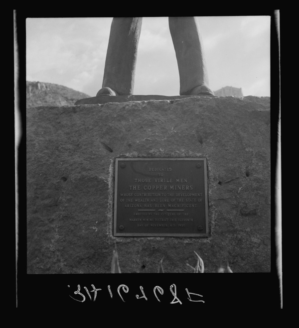 Inscription on monument dedicated to the copper miners of Arizona. Bisbee, Arizona