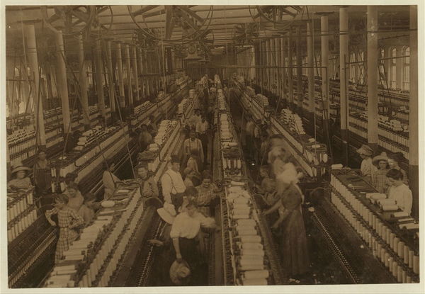 Interior of Magnolia (Miss.) Cotton Mills spinning room. See the little ones scattered through the mill. All work. See also other Magnolia photos and labels. Location: Magnolia, Mississippi.