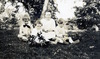 Sallie Moore Short and her nieces Kitty, Mary Lois, and Martha playing in the leaves on the Moore...