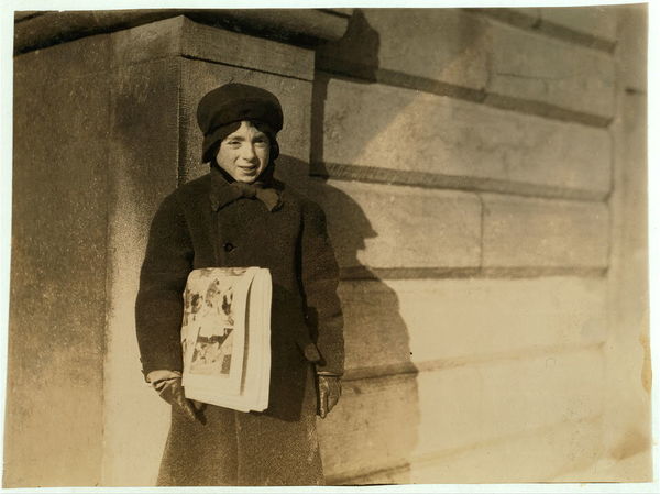 Isidor Lipovsky, 24 Luck Street. 10 years old and been selling every day part of the time. Second year at it. Location: Burlington, Vermont / Lewis W. Hine.