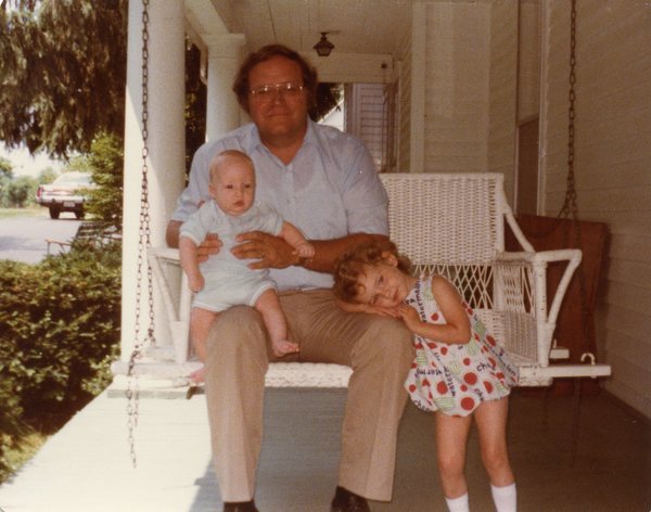 Jack Birdwhistell and daughter cory and son Dan on the porch swing at the home of Carl and Mary L...