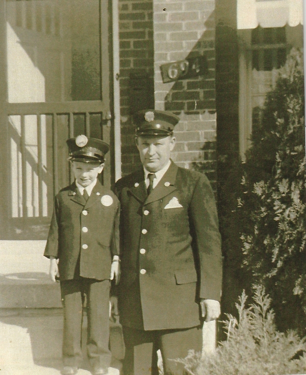 James K Bradley, Sr. and Jr. James Sr was a City of Memphis Fireman, my Grandmother had my Dad a dress uniform made to match his Dad. On the front porch of their home at 694 Hillcrest St