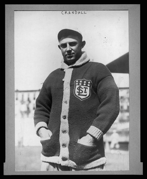 James Otis "Doc" Crandall, St. Louis Terriers (Federal League) baseball player, half-length portrait, facing front, wearing sweater with "St.L" emblem