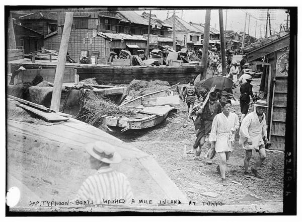 Japanese typhoon-boats washed a mile inland at Tokyo