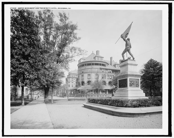 Jasper Monument and the De Soto Hotel, Savannah, Ga.