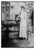 Mrs. W.G. Harding with dog "Hub" who is sitting on table