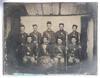 Nine unidentified soldiers in Union uniforms and forage caps, eight with bayoneted muskets and one with a drum