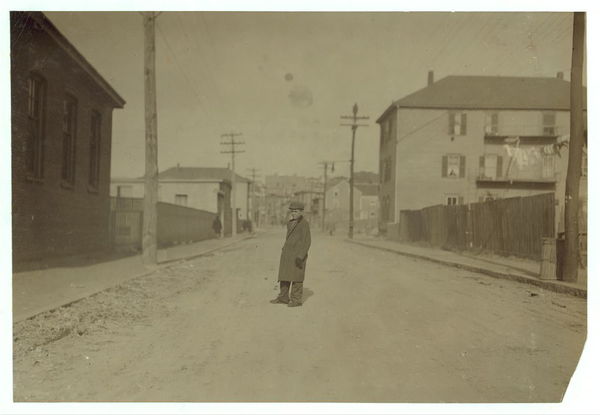 Going home Saturday noon, Jan 6., from Nashawena, Nonquitt and Manomet Mills. Many of these smallest ones said, "Working in these mills." Location: New Bedford, Massachusetts.
