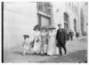 Mrs. Mills, Mrs. Hyde, Mrs. Ginnett, a detective and a little girl walking down the street together