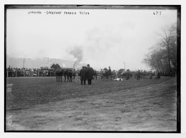 Louis Frank with trotter "Strange Leaf", prize winner, Speedway Parade