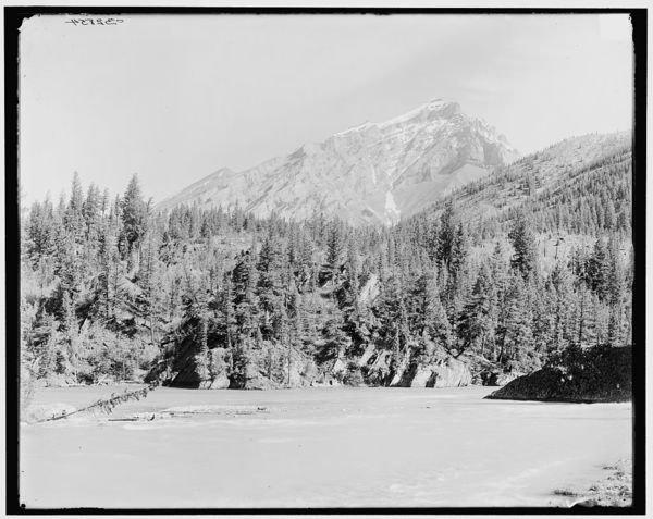 Up Spray River from bridge, Canadian National Park, Alberta, Canada