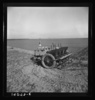 Kern County, California. Large-scale mechanized farming. The potato planter, operated by a crew of three men, makes the rows, fertilizes and plants potatoes in one operation