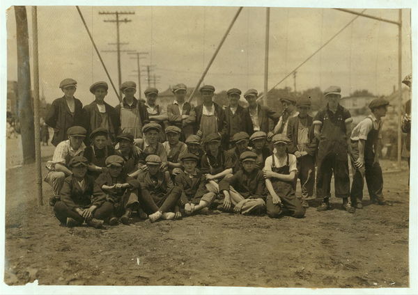 Kerr Thread. Young workers on Ball Ground at noon. Two leagues - Junior and Senior. Location: Fall River, Massachusetts