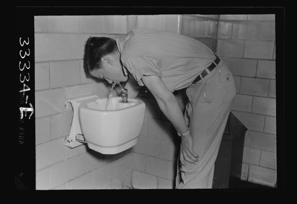 Keysville, Virginia. Randolph Henry High School. Boy at the drinking fountain