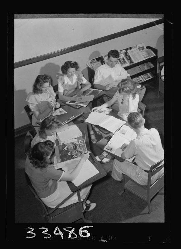 Keysville, Virginia. Randolph Henry High School. Social studies class. Students study in groups of six or eight, each group picking own subject
