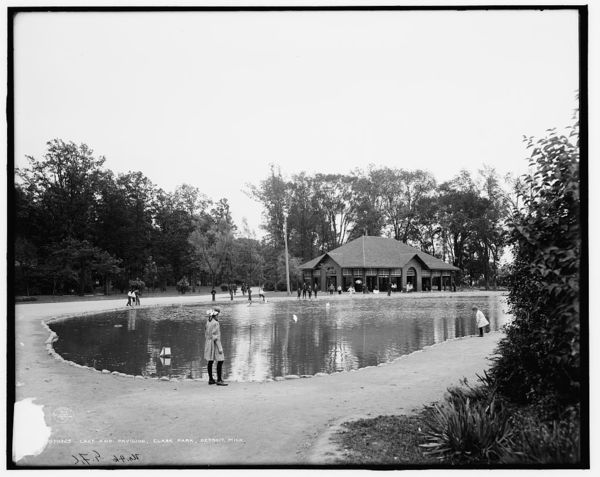 Lake and pavilion, Clark Park, Detroit, Mich.