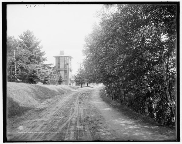 Lake Placid Club, Lakeside Tower from Shore Drive, looking south