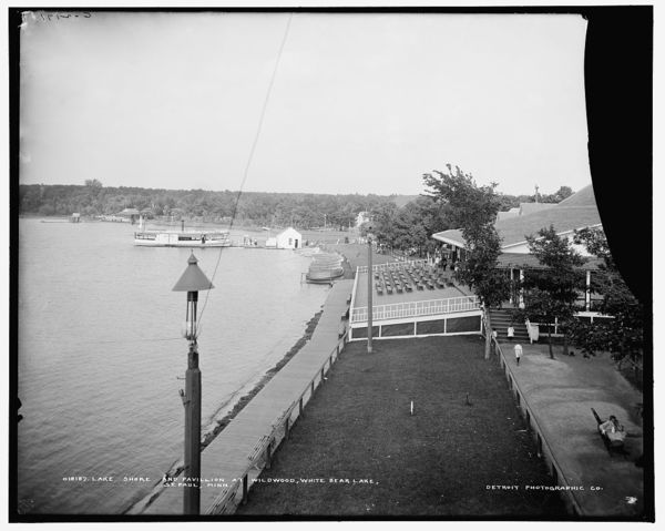 Lake shore and pavilion at Wildwood, White Bear Lake, near St. Paul, Minn.
