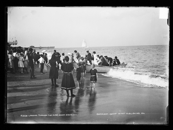 Landing through the surf, Ocean Grove, N.J.
