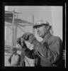 Las Vegas, Nevada. One of the construction workers at the Basic Magnesium Incorporated plant, working at the pipe vise. He is working on a building near the peat storage building near which he is standing