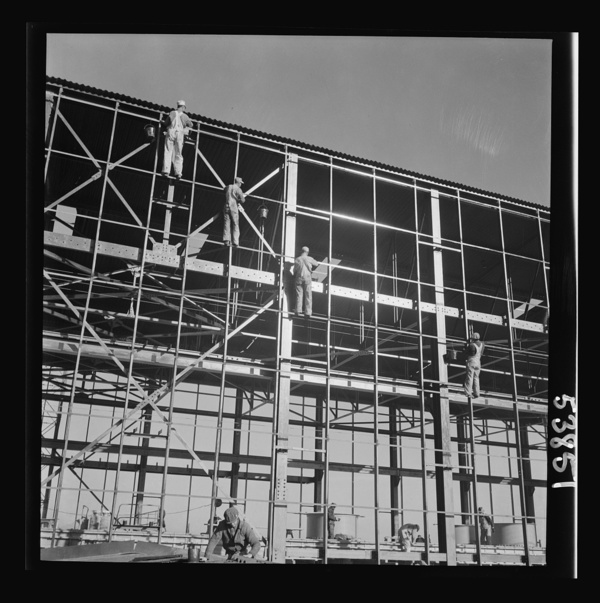 Las Vegas, Nevada. Painters at work seventy feet above ground on the gigantic construction of the Basic Magnesium Incorporated plant in the southern Nevada desert