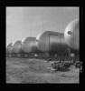 Las Vegas, Nevada. Like a row of dirigible balloons, the propane gas storage tanks rest upon the floor of the southern Nevada desert at Basic Magnesium's giant plant, where magnesium is produced
