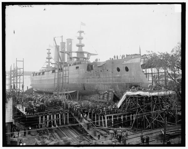 Launch of battleship Georgia, waiting for launching, Bath, Me.