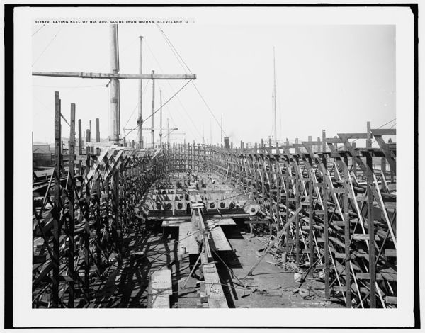 Laying keel of no. 400, Globe Iron Works, Cleveland, Ohio