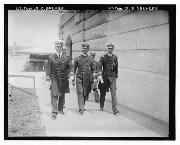 LCDR R.C. Bulmer, Adm. Von Rebeur-Paschwitz, LCDR D.R. Sellers