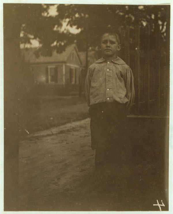 Lea Clemner, 5 Trenton Street, Gastonia, N.C. 8 years old. Beginning to doff. Said he gets only 15 cents a day. Works part time in mill (4 days a week and part time goes to school. Query, --When?. Location: Gastonia, North Carolina.