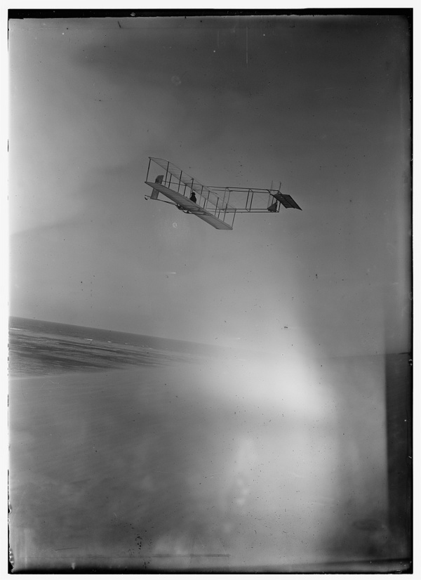 Left rear view of glider at a high altitude; Kitty Hawk, North Carolina