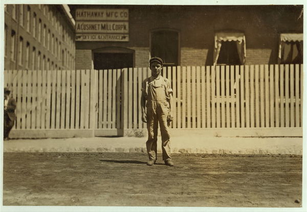 Arthur Sarasin, 7 Acushnet Block. Works in weaving room. At his house his people said he was fourteen last week. Location: New Bedford, Massachusetts.