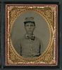 James W. Millner of Company K, 38th Virginia Infantry Regiment with bayoneted musket, holstered pistol, and knife