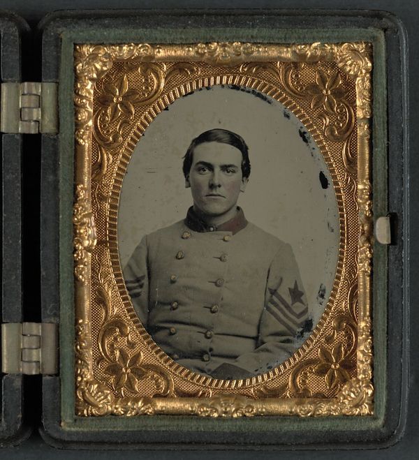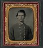 Unidentified soldier in Confederate uniform with conversion musket and small Bowie knife
