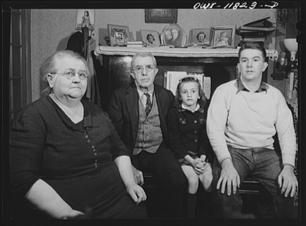 Lititz, Pennsylvania. Mr. and Mrs. Benjamin Lutz, unmarried son Henry, and granddaughter Roberta Jean at home. Benny is a butcher; he also writes hymns and patriotic songs