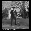 Lititz, Pennsylvania. Old Mennonite sweeping leaves