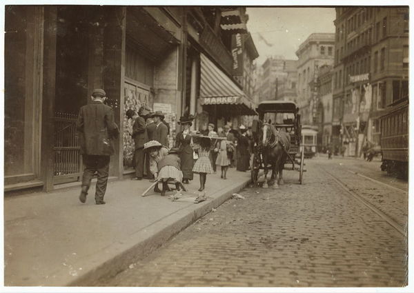 Little Girl Woodpickers Making Up a Load. Location: Boston, Massachusetts.