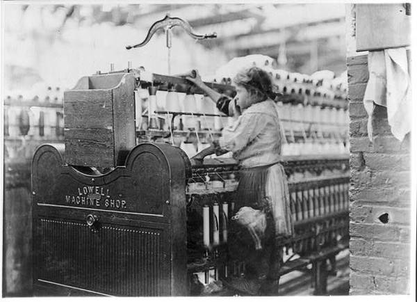 Little spinner in Bibb Mill No. 1, Macon, Ga. She was so small she had to climb up on to the spinning frame to mend broken threads. See also photo 488. Jan. 19, 1909. Location: Macon, Georgia.