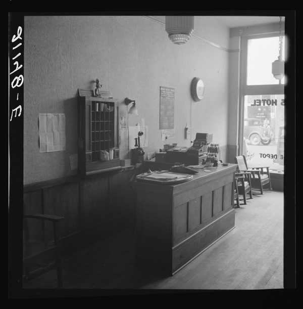 Lobby of only hotel in small town (population: 749). West Carlton, Yamhill County, Oregon
