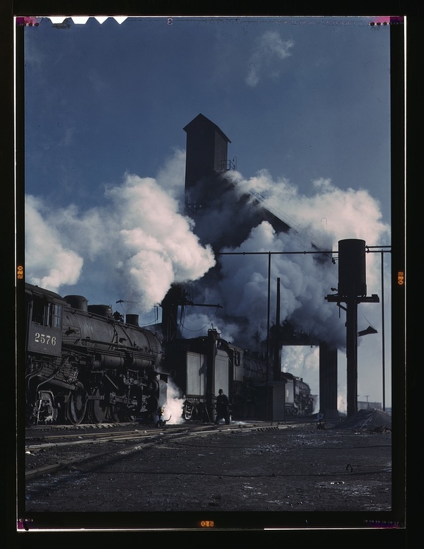 Locomotives over the ash pit at the roundhouse and coaling station at the Chicago and Northwestern Railroad yards, Chicago, Ill.
