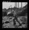 "Pond monkey" guides course of logs from the mill pond to the chute. Pelican Bay Lumber Company mill. Klamath Falls, Oregon