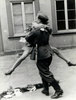 We see sheer exuberance and love as this soldier returns home to his love. Unknown photographer.