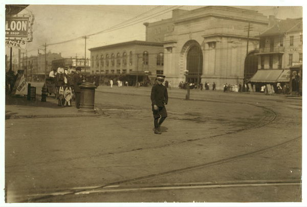 A typical messenger boy in New Orleans. The telegraph companies are trying to obey the law, and few violations occur. See Hine report on Messengers. Location: New Orleans, Louisiana.