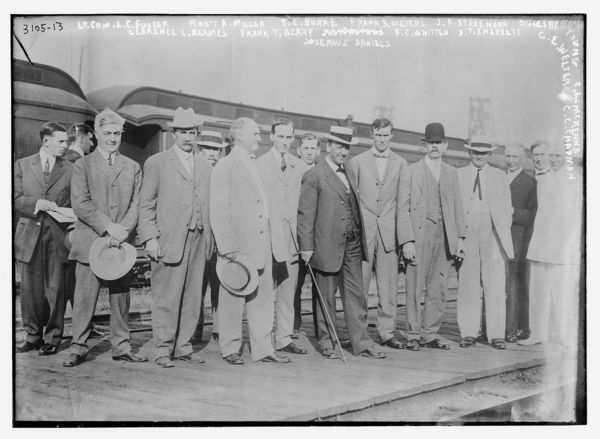 LT. Com. L.C. Fuller, Robt. A. Miller, T.C. Burke, Frank S. Meyers, J.A. Stevenson, Oglesby Young, C.L. McKenna, Clarence L. Reames, Frank T. Berry, F.C. Whitten, D.T. Sherbett, Josephus Daniels, C.E. Welter, C.C. Chapman
